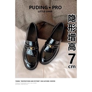 【内增高】凯旋门金扣一脚蹬懒人乐福女英伦风圆头小皮鞋粗跟单鞋