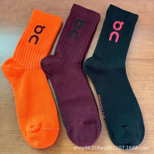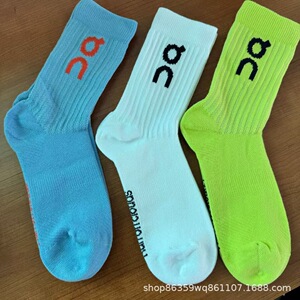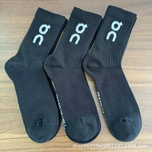 新款On字母休闲百搭中筒运动棉袜3双装跑步情侣款袜子纯色男女款