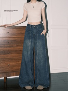 复古潮流爆款收腰阔腿牛仔裤女春秋新款设计感高腰宽松显瘦拖地裤
