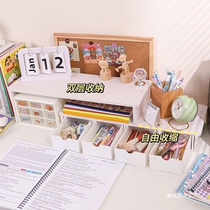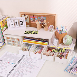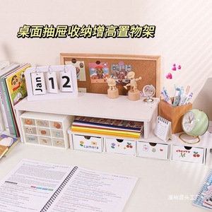 无印风白色增高架下收纳盒子抽屉式宿舍整理盒学生文具整理简约