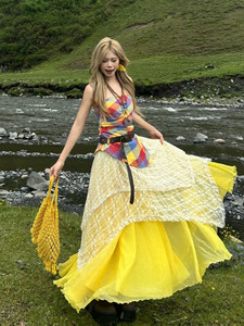 单黄色半身裙-有腰带【川西穿搭吊带/川西裙子套装/川西感旅游穿搭/异域风情/抹胸连衣裙/新疆旅游微胖