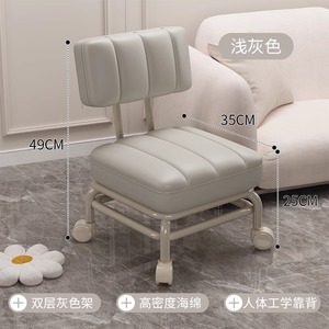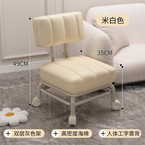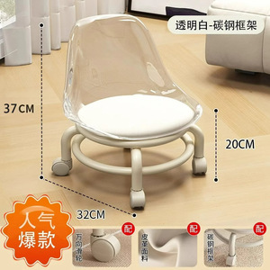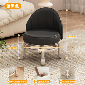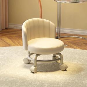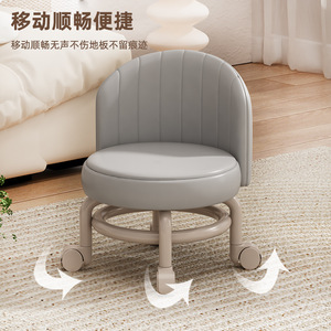 万向轮矮凳小凳子带靠背滑轮矮凳家用客厅带娃神器可移动软包圆凳