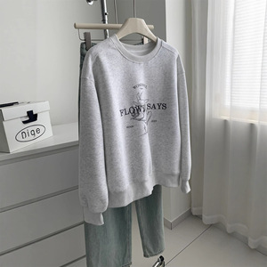 韩版卡通字母花卉印花洋气圆领卫衣女宽松慵懒学生外套秋季新款潮