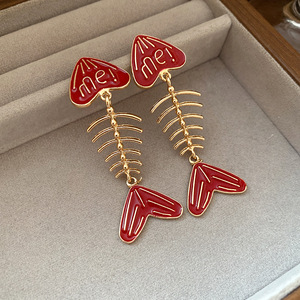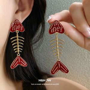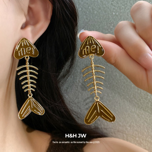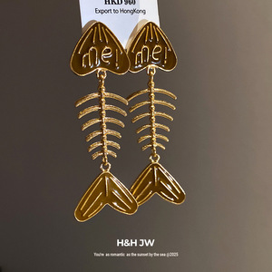 银针复古鱼骨头吊坠耳环欧美时尚宫廷风气质耳钉轻奢高级感耳饰女