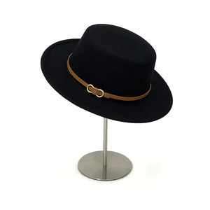 秋冬新款皮带扣毛呢平檐帽子女英伦复古平顶毛毡帽拍照逛街礼帽