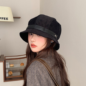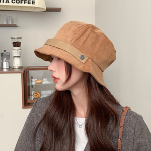 灯芯绒渔夫帽女2025新款气质素颜遮脸帽子女秋冬赫本风保暖盆帽潮