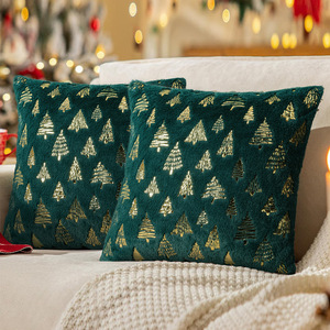 现货pv绒烫金圣诞圣诞树烫金双面抱枕套靠垫套氛围装饰靠垫套