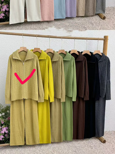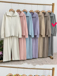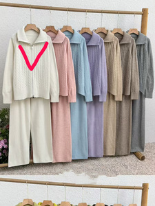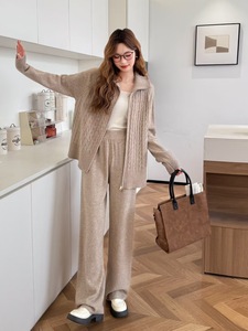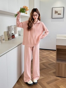 半高领双拉链毛衣外套+针织阔腿裤两件套2025秋冬新款毛衣套装女