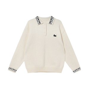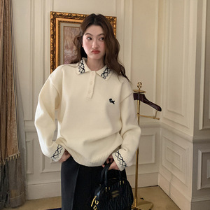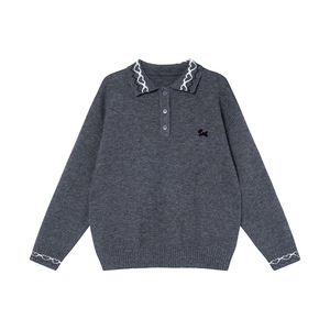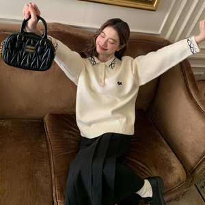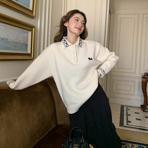 日系学院风polo领套头针织衫秋冬款学生洋气百搭毛衣女内搭打底衫