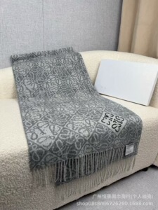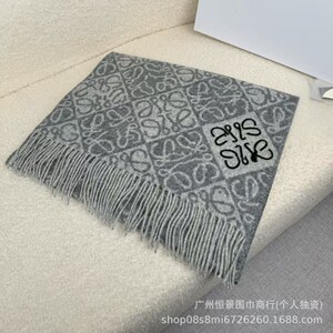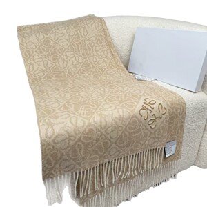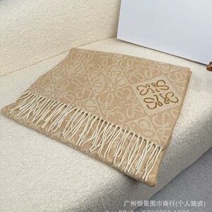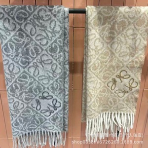 奶茶色棋盘格刺绣提花羊绒围巾舒适保暖拼色女士秋冬新款百搭披肩