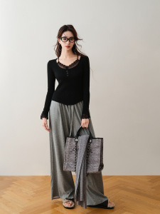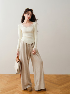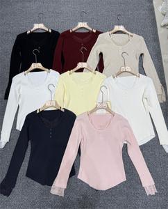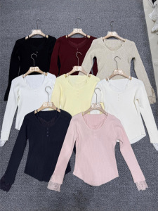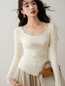 蕾丝花边针织衫女春秋季2025新款高级感毛衣内搭洋气纯欲打底上衣