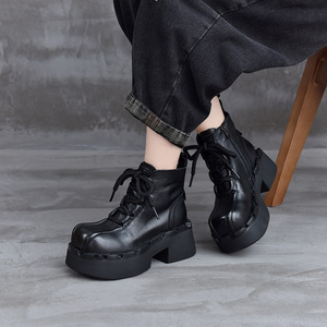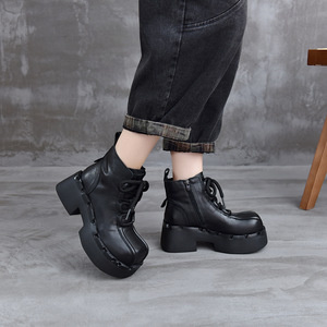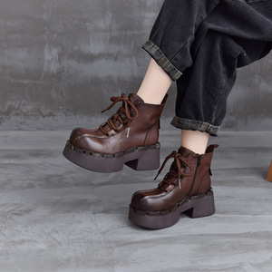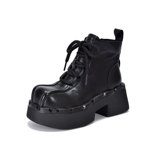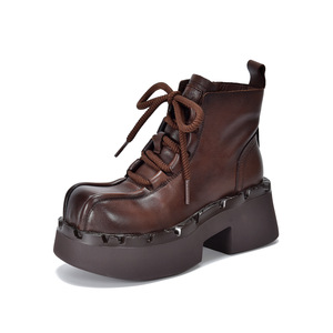 2025新款秋冬季粗跟休闲皮靴厚底加绒棉靴马丁靴擦色复古风马丁靴