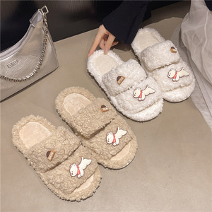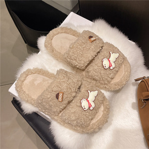 软萌可爱小狗毛毛拖鞋女外穿2025秋冬季新款踩屎感休闲舒适棉拖鞋