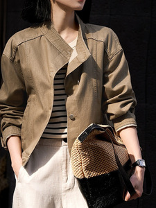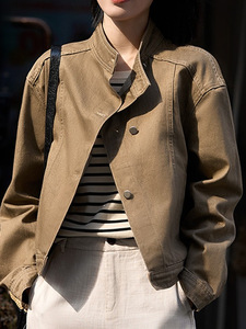 不对称立领牛仔外套休闲短款上衣长袖夹克女装2025秋季新款牛仔衫