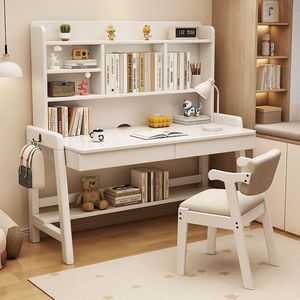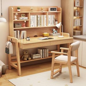 带书架多功能一体桌实木书桌全实木学习桌椅套装书桌儿童初中高中