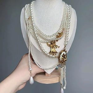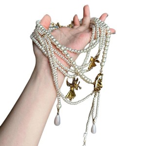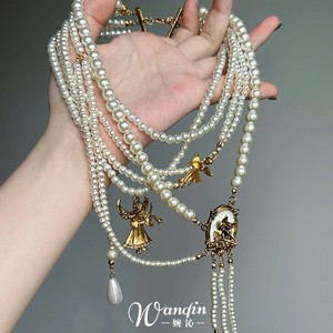 复古宫廷风天使多层叠戴珍珠流苏项链轻奢贵气千金毛衣链颈链配饰