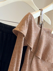 一字肩斜肩长袖t恤早秋女装2025年新款爆款单肩露肩掐腰短款上衣
