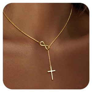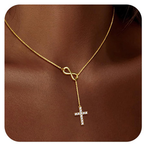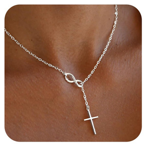 跨境严选简约无限8字十字项链 铜镶锆十字架项链潮流女士锁骨链