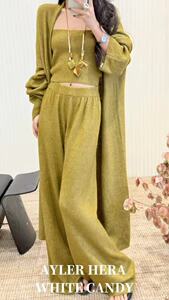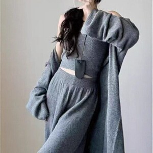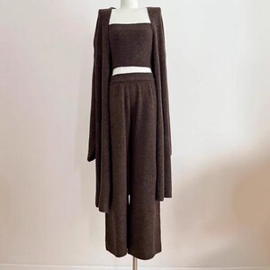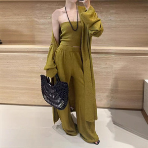 欧美外贸套装女2025秋冬时尚气质优雅针织开衫+抹胸阔腿裤三件套