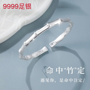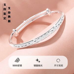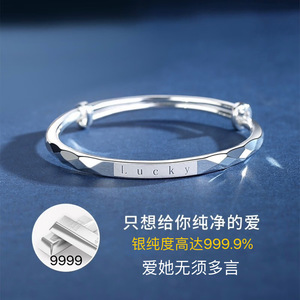 本命年锦鲤银手镯女纯银9999足银镯子实心年轻款情人节礼物送女友