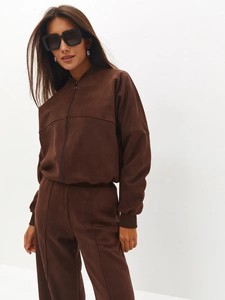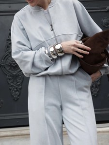 跨境 欧美热卖新款加厚立领复古夹克短款拉链女装鹿皮绒外套套装