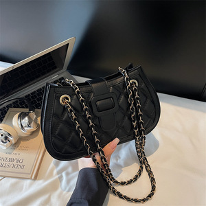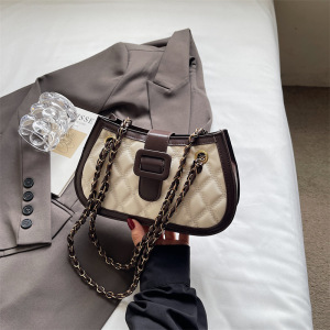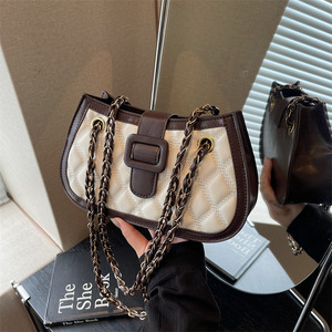 菱格链条包包2025新款时尚撞色拼接质感腋下包洋气潮流斜挎包女包