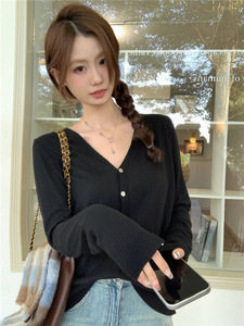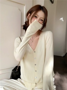温柔老钱风长袖防晒针织开衫女夏季2025新款百搭宽松V领显瘦上衣