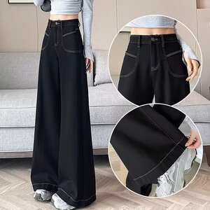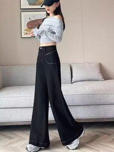 黑色色阔腿牛仔裤女2025春秋季新款高腰小个子显高宽松拖地直筒裤