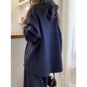 欧货连帽半拉链正肩卫衣女春季大码胖mm显瘦中长款遮屁股洋气上衣