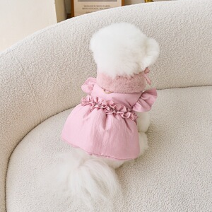 猫咪小型狗狗衣服宠物秋冬公主蝴蝶结裙子棉衣装牵引保暖+围脖