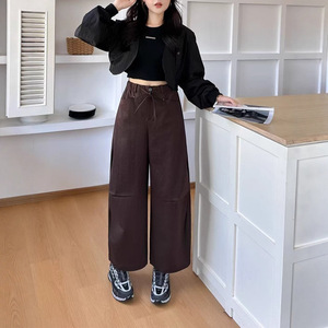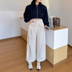 南油2025新款今年流行爆款设计抽腰绳九分裤高腰弯刀裤百搭休闲裤