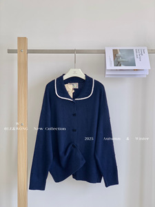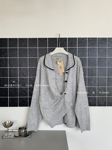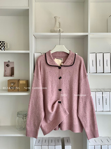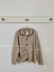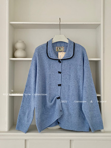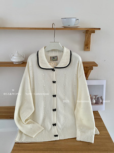 W家 法式气质复古蝴蝶结扣子针织开衫女2025早秋新款百搭翻领上衣