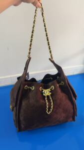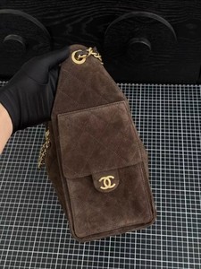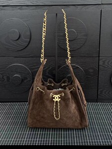 ChaneI新款25bag菱格流浪包小香秋冬麂皮菱格女士抽绳链条腋下包