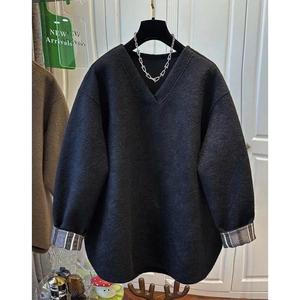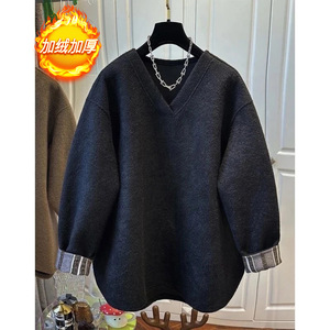 秋冬胖妹妹设计感加绒加厚保暖纯色毛呢卫衣女流行百搭设计感上衣