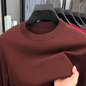 跨境爆款秋冬新休闲长袖针织打底衫毛衣T恤男士羊毛真丝上衣