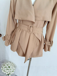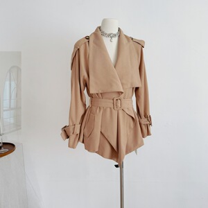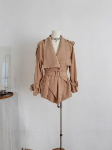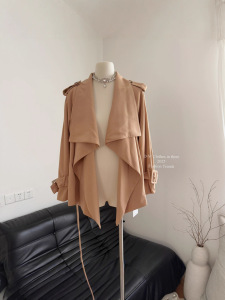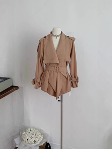 『欣幸』2025秋季新款大翻领卡其色风衣外套女收腰短款英伦风大衣