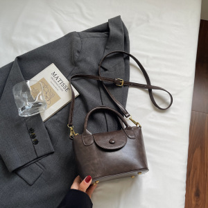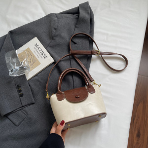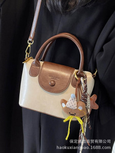 复古手提包包女式2025新款潮高级感撞色时尚单肩包通勤斜挎饺子包