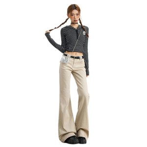秋季新款喇叭牛仔裤女美式高街设计感口袋低腰修身显瘦拖地马蹄裤