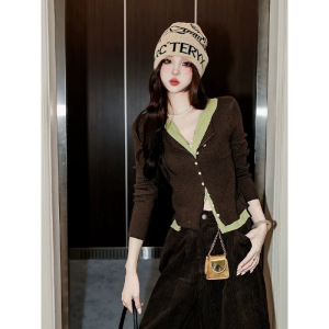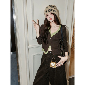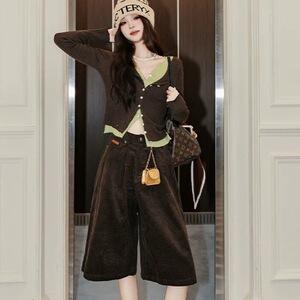 2025超火秋装一整套时尚气质慵懒松弛高级感穿搭咖色针织衫套装裤