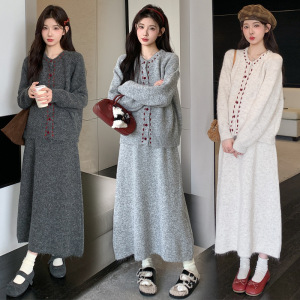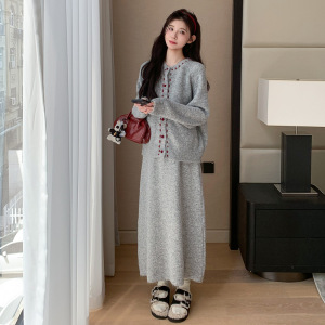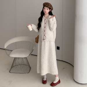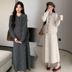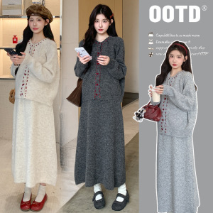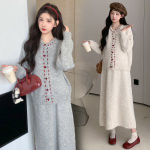 孕妇套装2025新款时尚撞色长袖开衫半身裙秋季孕妈高级穿搭两件套