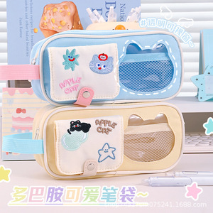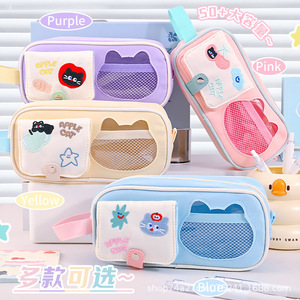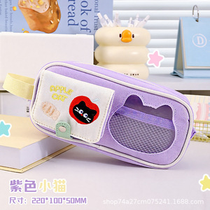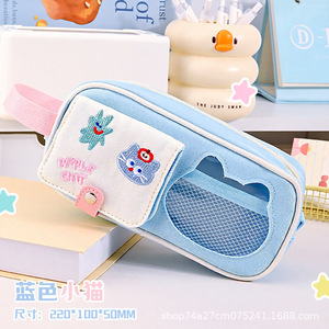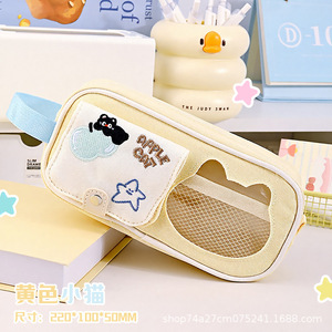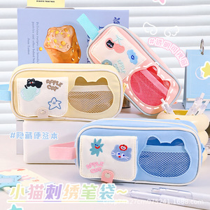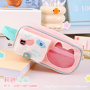 小猫刺绣网纱笔袋便携手提文具袋小学生耐脏小女孩高颜值铅笔袋