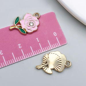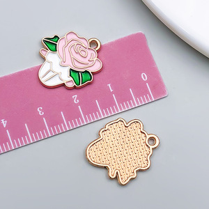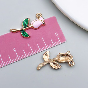 粉色系树枝花束康乃馨玫瑰花合金小挂件吊坠diy手链项链饰品配件