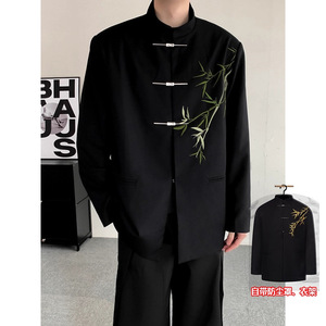 新中式国风金竹刺绣飞机扣中山装高级感西装外套男订婚礼西服套装