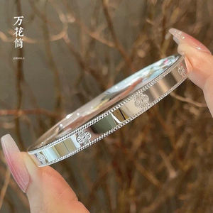 足银9999纯银手镯女万花筒四叶草闭口实心银镯子送女朋友七夕礼物