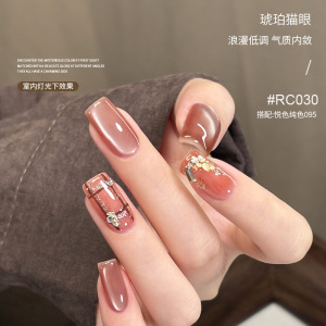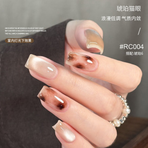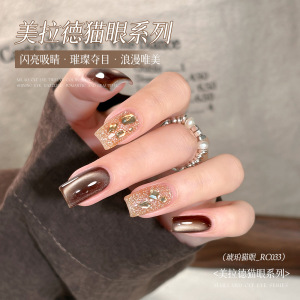 KaSi琥珀猫眼甲油胶2025年秋冬棕色爆闪美拉德玻璃珠瓷白开水美甲