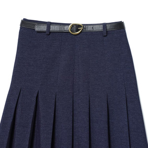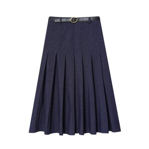 PB&ZA女装2025年秋季新款通勤百搭款配腰带牛仔褶裥半身裙4745222