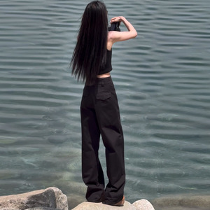 美式工装阔腿裤女大码胖mm宽松显瘦高腰窄版直筒西装裤子