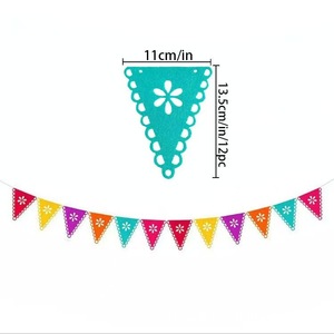 墨西哥毛毡拉旗皮纳塔狂欢装饰品彩旗亡灵节七彩方形镂空拉花彩旗