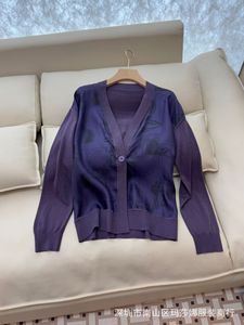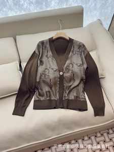 法式南油2025秋季新款V领单扣真丝印花拼接宽松百搭针织羊毛开衫