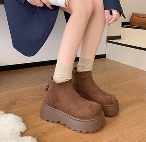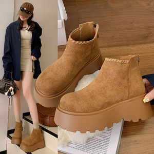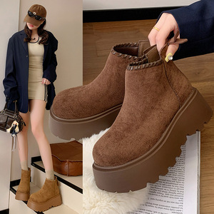 贾不假勃肯靴女2025新款秋季超火绒面圆头百搭松糕底小个子时装靴